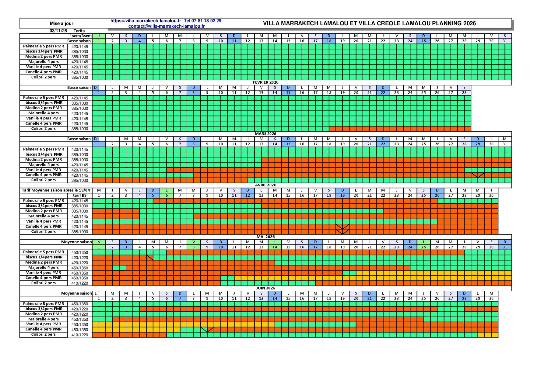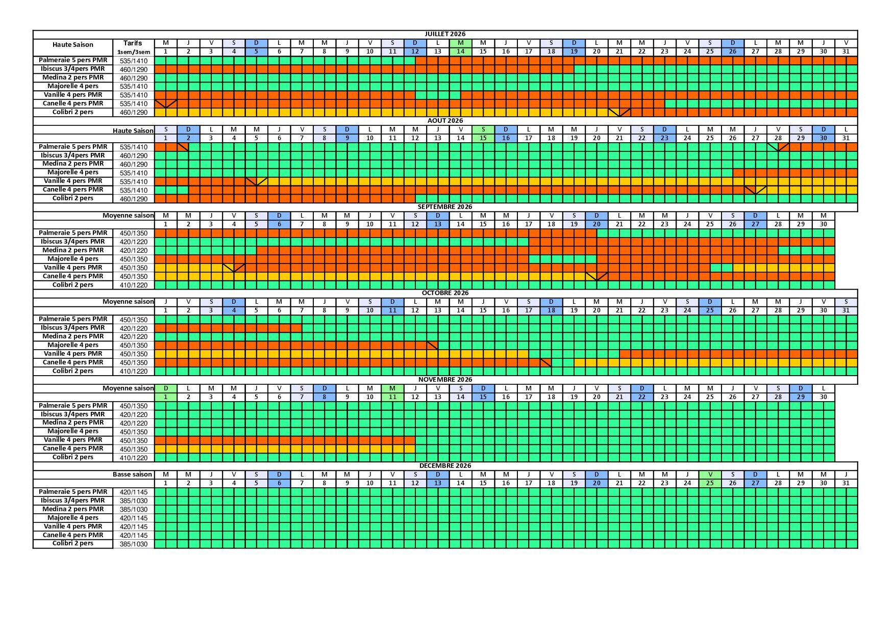 planning des reservations du 2eme semestre 2026 : juillet aout septembre octobre et novembre 2026